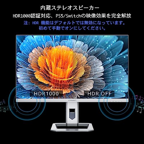 - 【ミニLED非光沢パネル】高質量非光沢ミニLEDパネルを採用してフルHDの4倍の表示エリアの4K UHDに対応!映像の細部までをよりリアルに鮮明に表示できます。100%SRGB高色域とHDR1000機能付き、鮮やかな色彩表現で斜めから見ても優れた色再現性とコントラストを実現しています。隅々まで豊富で繊細な画面を表示できます。99%DCI-P3、99%AdobeRGB色域、動画編集、デザイン最適の専門モニター。注意:HDR1000機能はゲームやHDR映画対応します、システムで直接HDR機能オンなら画面は灰色になります。