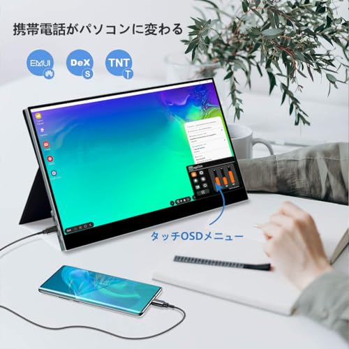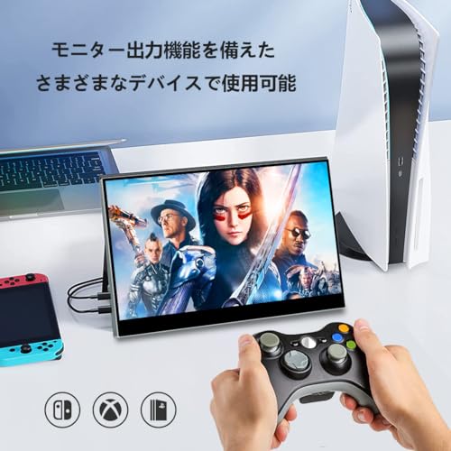 - 【IPS液晶パネル・高輝度450nits・100%sRGB広色域】可視性に優れたIPS液晶パネルを採用しているため、視角による輝度変化が少なく、最大178°の広視野角で、どこから見ても画像や映像が鮮明で美しく見えます。市販の大半のモバイルモニターの解像度は色域72%sRGBで輝度300nits以下に対し、本製品は100%sRGBの広色域と450nits高輝度だから、まさに鶏群の一鶴の高画質!HDRにも対応でき、画質に特化したスペックはゲームや映画鑑賞に最適!