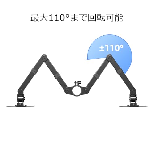 - 角度調節:液晶ディスプレイの画面は上下方向に+45°ー-45°、左右方向に180°までの角度調整が可能です。さらに、モニター取付け部は360°回転可能なので、組み合わせもアレンジできます。ご注意:可動範囲内であっても、モニターのサイズによっては調整角度が変わることがあります
