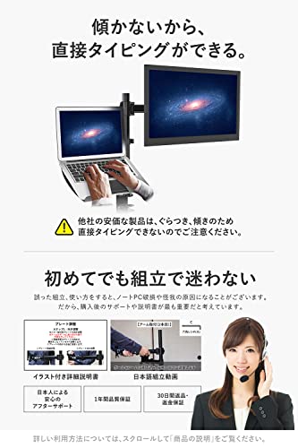 - 【組立・取付簡単】クランプ固定とグロメット固定二つの取付方法があります。机にしっかり固定するので、液晶ディスプレイの転倒を防ぎ、耐震にも効果があります。組立のすべて部品は付属しています、簡単に取り付けできます。商品の品質には十分注意を払っておりますが、初期不良、欠品、及び配送中の事故等での破損が生じた場合、返品や交換対応をさせていただきます。組み立てについて、何かご問題、ご不明な点がございましたら、ぜひ、ご遠慮なく、こちらに連絡してください。