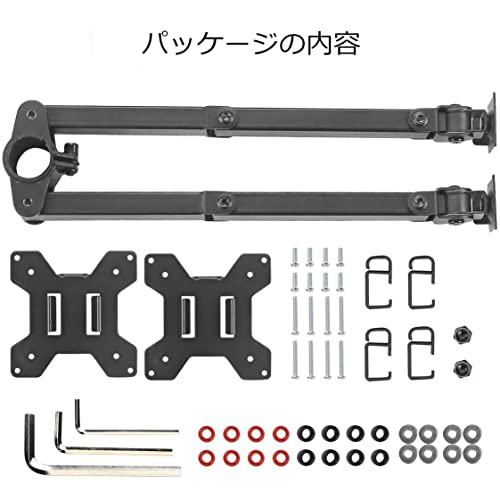 - 【商品仕様】ポールに設置できるアームです。耐荷重:10kg(一台)▶対応サイズ:13-27インチ▶VESA規格:75×75mm、100×100mm▶アームの穴の直径:3.5cm(説明書がありません。)