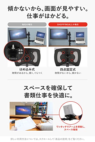 3 | 【作業効率アップ 傾かない 直接タイピング対応】 SHOPPINGALL カナダが愛した モニターアーム ノートパソコン アーム 2画面 デ... SHOPPINGALL 発売日 2021/07/11 総合評価 | |