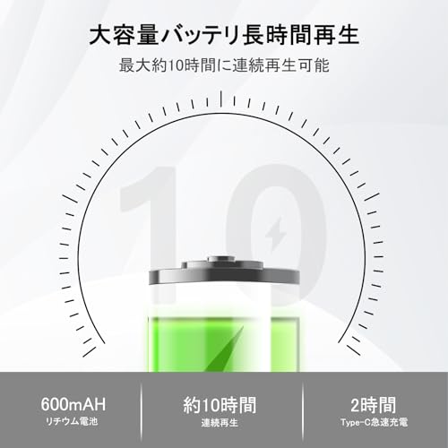 - 「Bluetooth 5.0&長時間再生」EBS-906ネックスピーカーは最先端のBluetooth 5.0チップが搭載され、10メートル以内の範囲で、高速転送と安定した接続できます。もちろん各種のデバイスには基本的に対応できます。そして、Type-C充電に対応し、ただ2時間だけで、フル充電を実現します。600MAH大容量バッテリを内蔵し、最大約10時間に連続再生が可能です。(ご注意:最大通信距難、充電時間、再生・通話可能時問、待受可能時間などはあくまで目安であり、使用状況によって異なります。)
