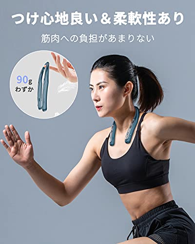 - 装着のしやすさ、首元への負担を軽減するため軟らかいシリコン製のネック部を採用しています。装着しやすいので、動きまわりながら使用でき、家事をしながらや自転車での使用などが可能です。重量はわずか175gで長時間の装着でも快適にご使用いただけます。
