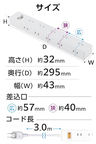 ・接続したプラグが隣の差込口に干渉しにくいよう、差込口の中心間が最短40mmと余裕のある設計となっています。また、それぞれの面の端1個口は57mmとさらに離した配置とし、大きなACアダプタなどでも利用しやすくしています。・差込口にプラグが差し込まれていない場合にほこりの侵入を防止する「ほこり防止シャッター」を装備しています。