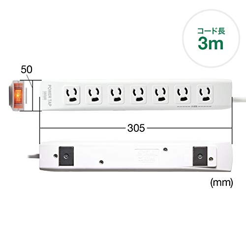 - サンワダイレクト 電源タップ 7個口 3m 3P 雷ガード マグネット 一括スイッチ