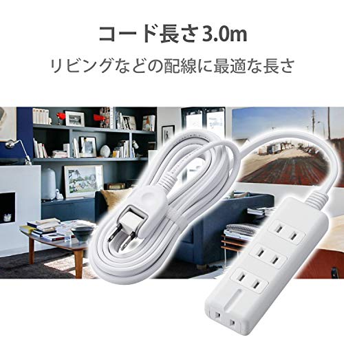 - エレコム 電源タップ マグネット 3m 4個口(内3ピン1) ホワイト T-KM...
