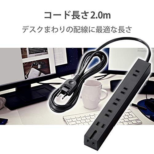 エレコム 電源タップ マグネット 強力 2m 6個口(内3ピン1) ブラック T-KM01-2620BK