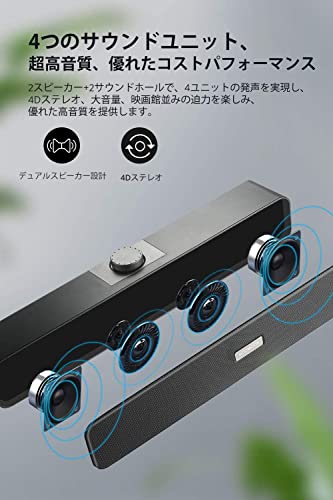 PCスピーカー サウンドバー Bluetooth5.0 大音量 パソコン/テレビ/スマホ/ゲーム機