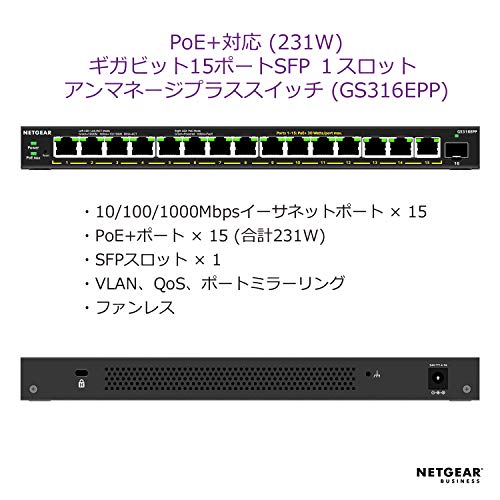 - NETGEAR スイッチングハブ 15ポート ギガビット (SFPx1) PoE+(231W)