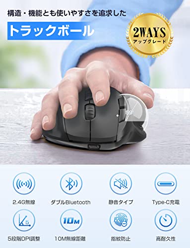 【次世代2WAY仕様】トラックボール ワイヤレスマウス 瞬時接続 無線2.4GH...