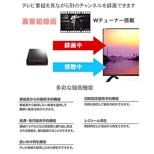 - ??本体に直接録画!1TB録画用ハードディスク内蔵/ 高詳細 ?裏番組録画ができるWチューナー搭載。地上波・BS・CSの3波に対応。 ? 壁掛け対応 VESA規格100×100 ⏰タイマー機能、毎週録画機能など多彩な録画機能を搭載 ?? 安心の日本国内製テレビボードを使用。メーカー保証1年