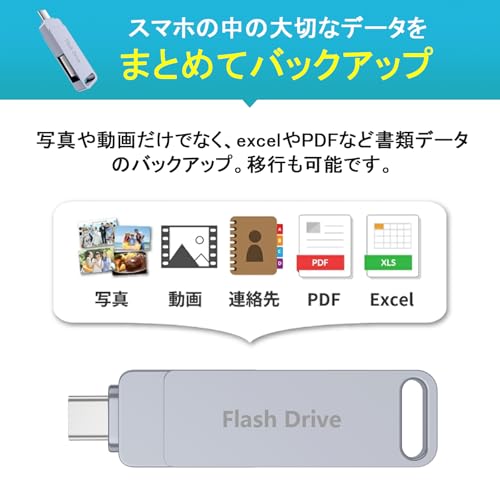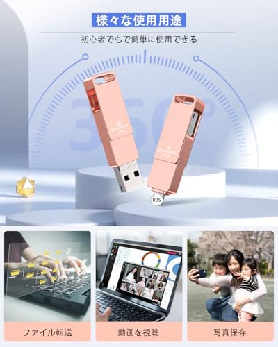 - 「スマホ容量対策のUSBメモリ・フラッシュドライブ」本スマホ USBメモは超軽量でコンパクトなスタイリッシュボディ、そしてキャップレスの367°回転式デザインで、どこにでも持ち運べます。スマホで撮った写真をフラッシュドライブに保存したい時、会議資料を素早く共有したい時、wifiとパソコンがない場合など便利で、旅行・通勤・会議に最適なiphone usbです。