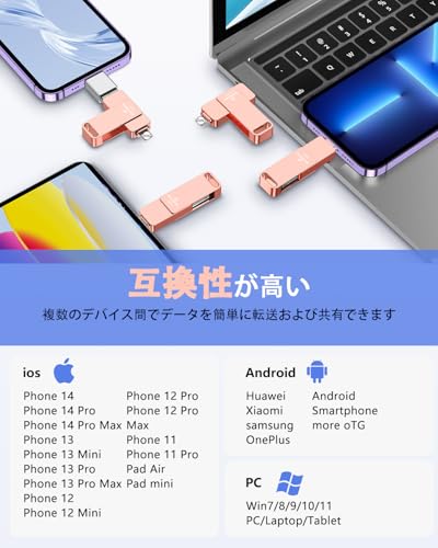 - 「大容量usbメモリ・幅広い交換性アイフォンusbメモリ 」128GB のiPhone USBメモリでストレージを拡張でき、iOS デバイスを容量不足から徹底的解放させます!更に、すべてのiPhoneおよびiPadシリーズと互換性があります。iPhone17/16 /15 /iPhone14/14 pro /14 Pro MaxiPhone 13 /13 Pro/13 Pro Max/13 mini/iPhone 12 /12 Pro/12 Pro Max/12 mini/ 11 /11 Pro/11 Pro Max / SE (第2/1世代) /X /XS/XS Max /XR/8 Plus/8 / 7 Plus/7 /6s Plus/6s/6 6 Plus /Pad Pro / iPod touch 13/ MacBook Air/Macbook Pro/ iMac/PC /ノートパソコンなどのデバイスに対応します。