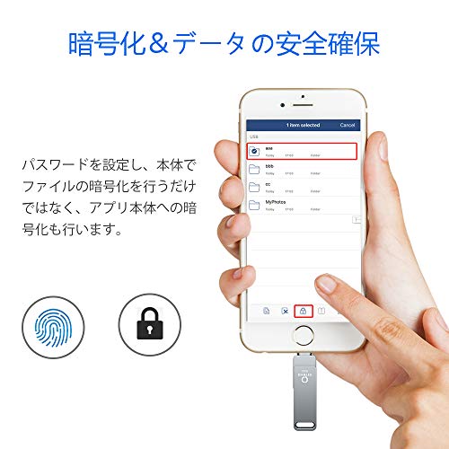 - 【高速データ移行/セキュリティ機能】USB3.0テクノロジーを採用し、写真、動画などのデータを短時間でバックアップでき、USB2.0に比べてデータ転送時間を大幅に短縮します。 写真や動画の保存に加え、ファイル、連絡先、スキャンデータ、音楽データ、書籍資料などのデータフォーマットも保存できます。 1. 専用アプリでパスワードを設定してデータを暗号化し、データ漏洩を効果的に防ぎます。 (セキュリティ機能はiOSモデルにのみ適用されますのでご注意ください。 本製品には日本語のイラスト付き説明書も付いており、機械が苦手な方にも簡単にデータを転送できます。