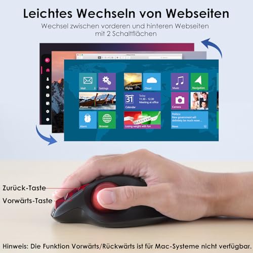 - トラックボールの快適さ - 34mmのトラックボールと5つのボタンを備えており、親指でコントロールできるトラックボールが1か所に留まるので、マウスでカーソルを動かす必要はありません。 平らな面だけでなく、脚やソファなどの表面にも使用できます。 すべてを完全にコントロールできます。